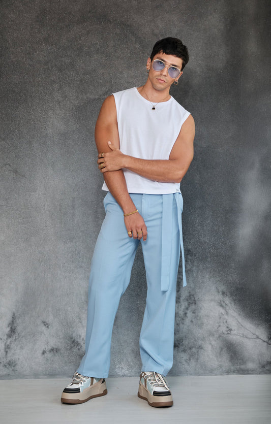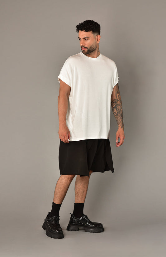 White sleeveless crop top T-shirt