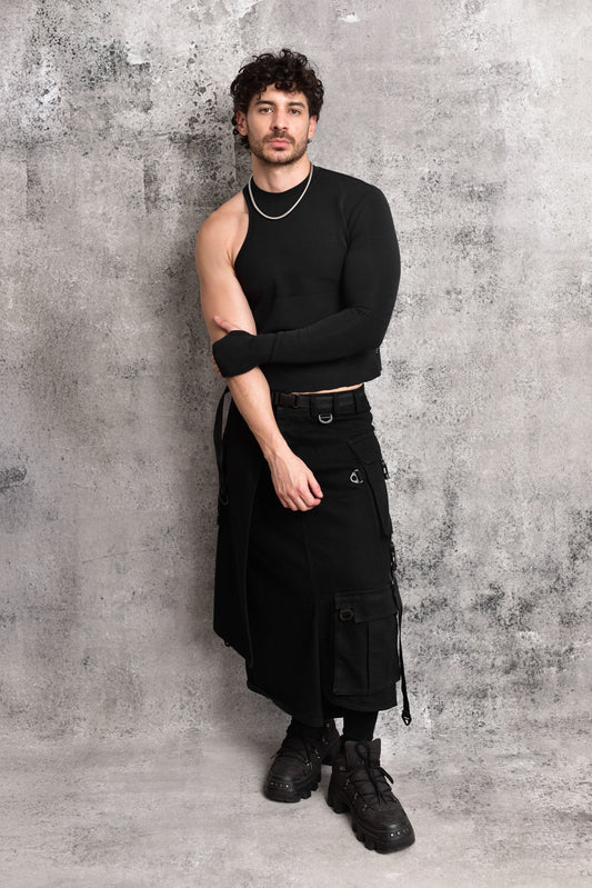 Black asymmetric fighter t-shirt