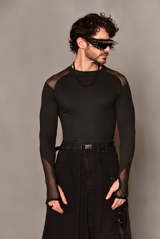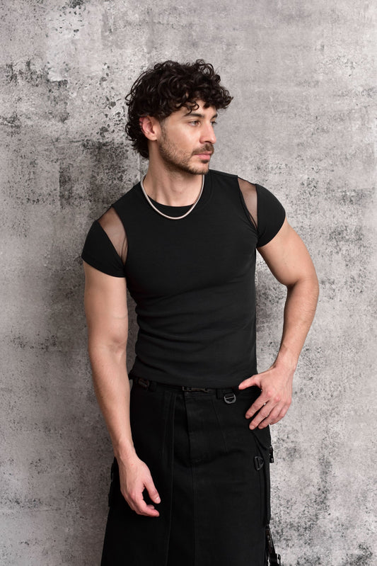 Baby tee black mesh T-shirt