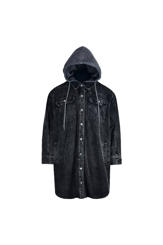 Long black corduroy jacket with hood